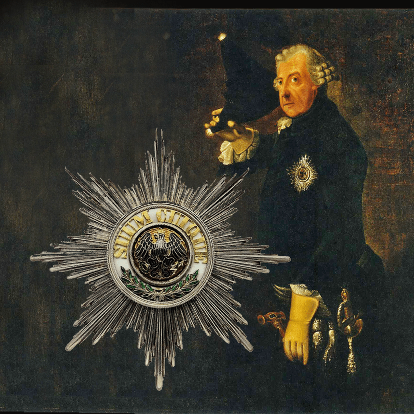 The Order of the Black Eagle Breast Star was an award granted by the Kings of Prussia and its design contains a tantalizing clue as to how the small Kingdom came to grow so powerful. The motto that is engraved upon the Breast Star was taken seriously and one that the Prussian kings lived by and instilled in their people. It was one very important philosophy…“To each according to their merit”…a motto that espouses rewarding merit and not allowing corruption or favoritism. It encapsulates how Prussia was ruled and why it became a model of efficiency in both civilian and military organization.