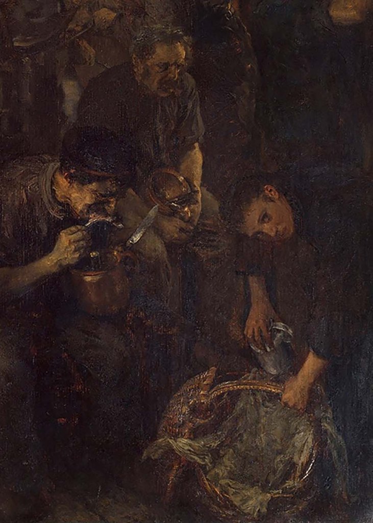 This is another painting that needs to be viewed large to be appreciated… Its the year 1875 and the “The Iron Rolling Mill” by Adolph Menzel was a sensation. Shortly after its introduction the painting became known as the ” Modern Cyclops”, as in the Greek sagas of Vulcans helpers who forged the gods’ weapons.