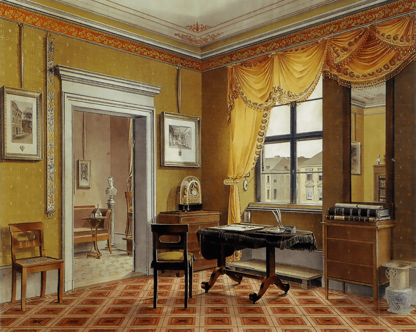 The Biedermeier style, which originated in Germany and Austria, flourished in the prosperous middle-class homes of Europe from about 1815 to 1848.