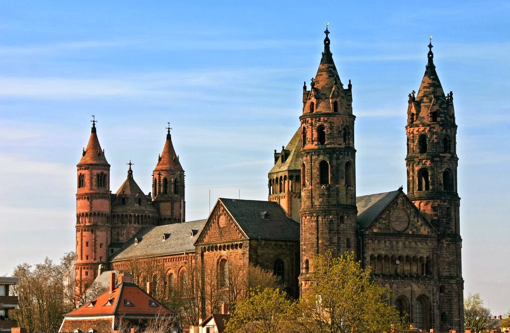 The Speyer Cathedral, (German: Dom zu Unserer lieben Frau in Speyer) is located in Speyer, Germany. Commissioned in 1024 by Conrad II, the imposing triple-aisled vaulted basilica of red sandstone is the “culmination of a design which was extremely influential in the subsequent development of Romanesque architecture during the 11th and 12th centuries”. As the burial site for Salian, Staufer and Habsburg emperors and kings, the cathedral is regarded as a symbol of imperial power.