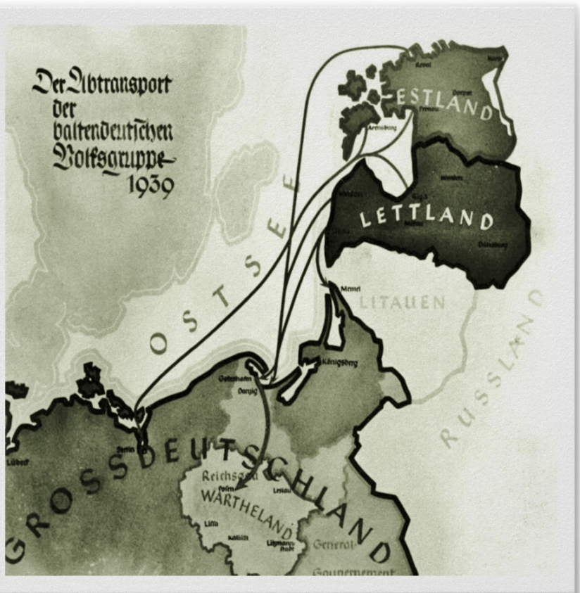 By 1941, the German-Russian Treaty was broken…Germany invaded Russia and took control of the Russian half of Poland plus Lithuania, Latvia and Estonia and a large part of Russia itself. This dramatic turn of events led to Baltic Germans in Lithuania being invited to also move back to Germany…Heim ins Reich. Conversely, it allowed some ethnic Germans to migrate back to their previous homelands in Lithuania, Poland, Latvia and Estonia.